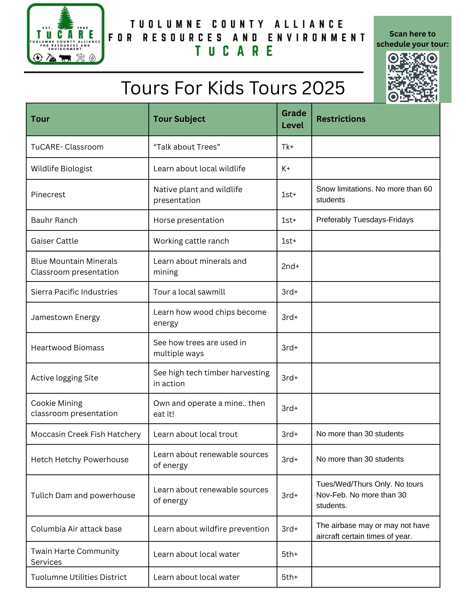 Tours for Kids 2025-2026 school year